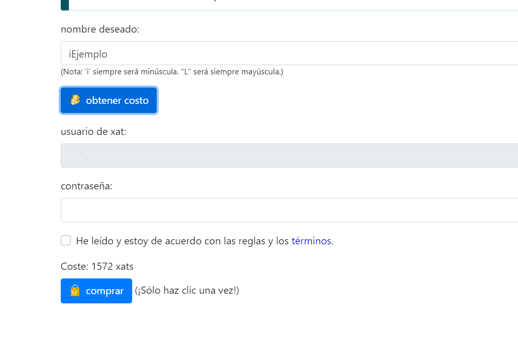 Hay que visitar la página de compra: https://xat.com/store#!shortname