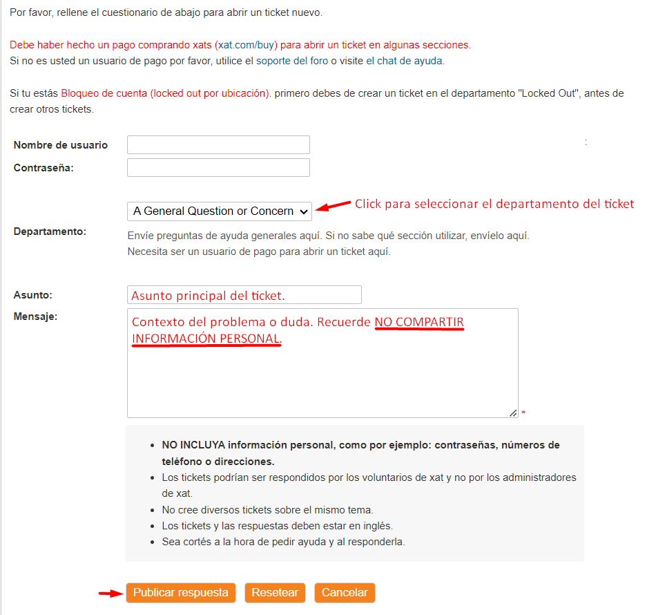 Si tenemos algún problema relacionado con xat en la que necesitemos respuesta directa de los voluntarios, el único medio disponible es vía ticket.
