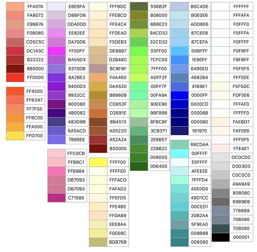 ⦁ Para saber el color que más nos gusta para nuestro Nick, podemos entrar a la página “Colores” de xat y nos copiaremos el código de color que más nos guste o tomamos como guía la siguiente imagen del artículo: